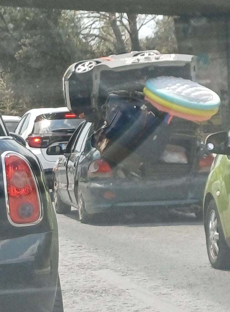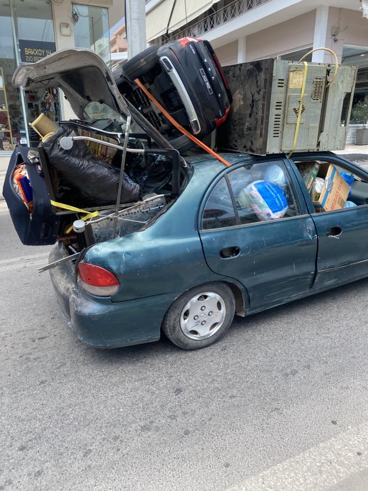 Όχι δεν πρόκειται για φωτομοντάζ. Ο Ρομά ιδιοκτήτης του παλιού Hyundai, το έχει φορτώσει μέχρι τον…ουρανό κουβαλώντας από οικιακές συσκευές μέχρι και ηλεκτρικό παιδικό αυτοκίνητο!