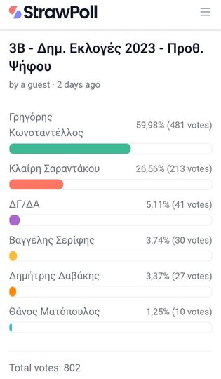 Καλή δημισκοπικη εμφάνιση του πρωτοεμφανιζόμενου συνδυασμού ΑΝΑΝΕΩΣΗ–ΟΡΑΜΑ ΓΙΑ ΤΟ ΜΕΛΛΟΝ της Κυρίας Κλαίρης Σαραντάκου (ανώτατη υπάλληλος του ΥΠΕΣ, πρώην υποψήφιας Ευρωβουλευτού με τη ΝΔ το 2019,όρων προέδρου της τοπικής της ΝΔ στα 3Β) η οποία δήλωσε σχολιάζοντας το αποτέλεσμα στο athinaikiriviera:Η δημοσκόπηση είναι ένα εργαλείο που αποτυπώνει το κλίμα της συγκυρίας και είναι χρήσιμη γιατί μας βοηθά να κατανοήσουμε και την τάση της στιγμής και να αναπροσαρμοσουμε τις πολιτικές μας ώστε αυτές να είναι όσο το δυνατόν πιο συμβατές με τις ανάγκες των πολιτων. Στο πλαίσιο αυτό κάθε μέτρηση είναι ευπρόσδεκτη.
