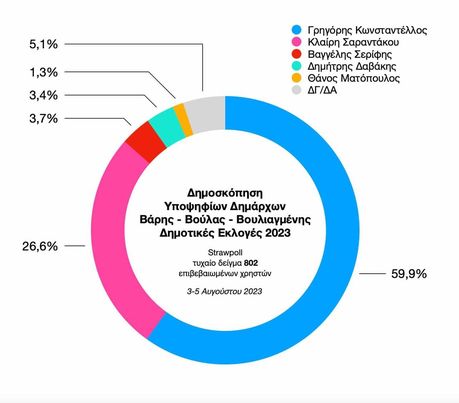 Σαφής η υπέροχη με 60% του νυν δημάρχου Γρηγόρη Κωνσταντελλου ο οποίος άνετα θα κερδίσει τη Τρίτη θητεία του στο Δήμο Βάρης Βούλας Βουλιαγμένης .